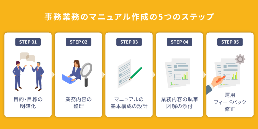 店舗運営におけるマニュアルの重要性は分かっていても、作成方法を知らないという方もいるはずです。作り方を押さえておけばより効果的なマニュアルを作成できるので、事前に確認しておきましょう。