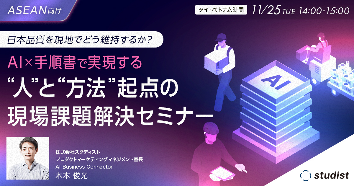【ASEAN向け】「日本品質」を現地でどう維持するか?AI x 手順書で実現する「人」と「方法」起点の現場課題解決セミナー