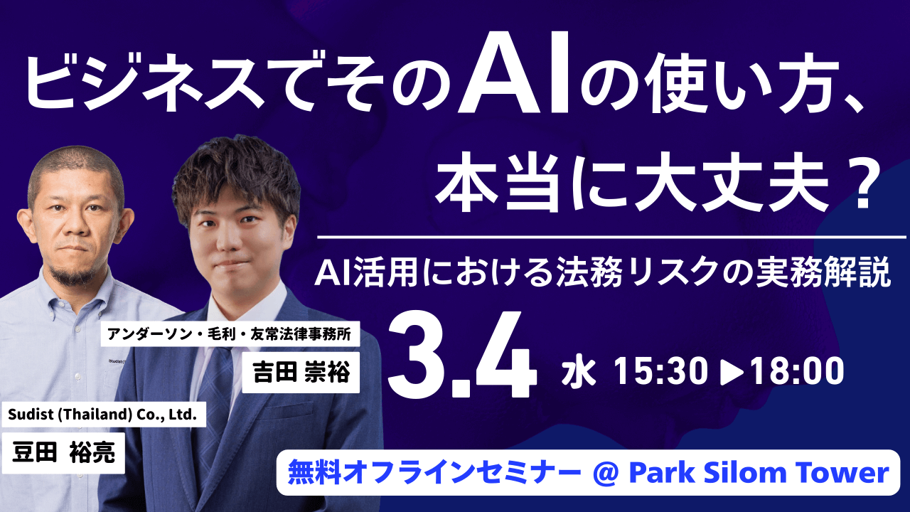 | 開催日時 | 2026年3月4日(水) タイ時間:15:30〜18:00 |