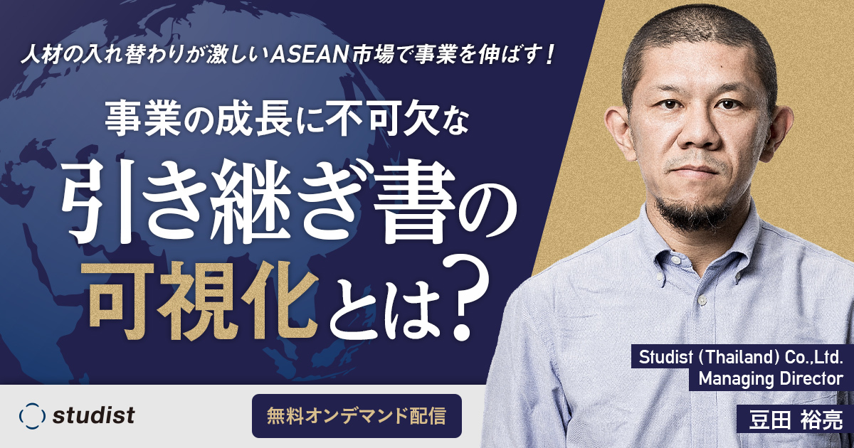 【オンデマンド配信】人材の入れ替わりが激しいASEAN市場で事業を伸ばす! 事業の成長に不可欠な引き継ぎ書の可視化とは?