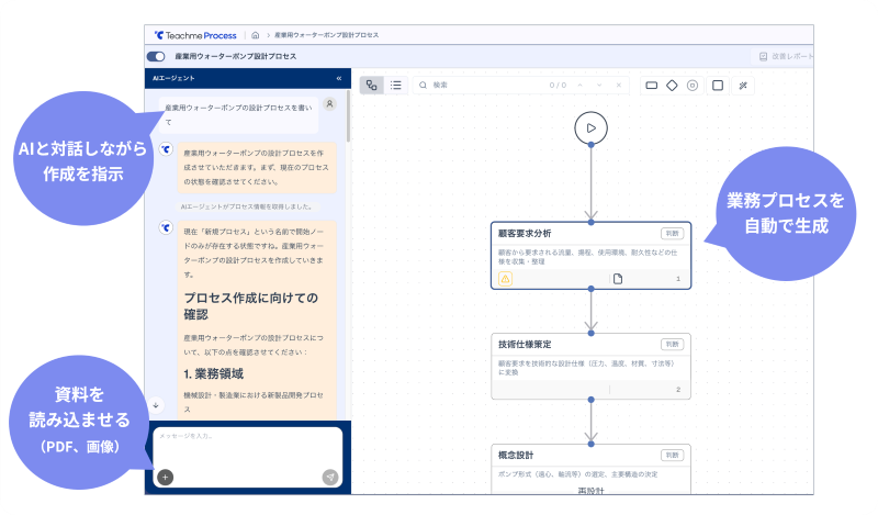 お手持ちの資料を読み込ませるだけで、AIが業務プロセス図を瞬時に自動生成。