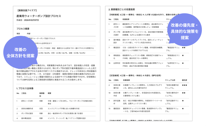 業務プロセス図をもとに、AIが改善ポイントを自動で提案。業務効率化をサポートします。